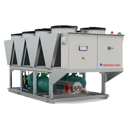 Chillers make cold water or water/glycol fluid mixture in order to cool buildings or processes. Often used in conjunction with coils in air handlers, chillers receive warm fluid from the air handler coil or process load, lower the temperature of the fluid, then a pump returns the fluid to the air handler coil or process.